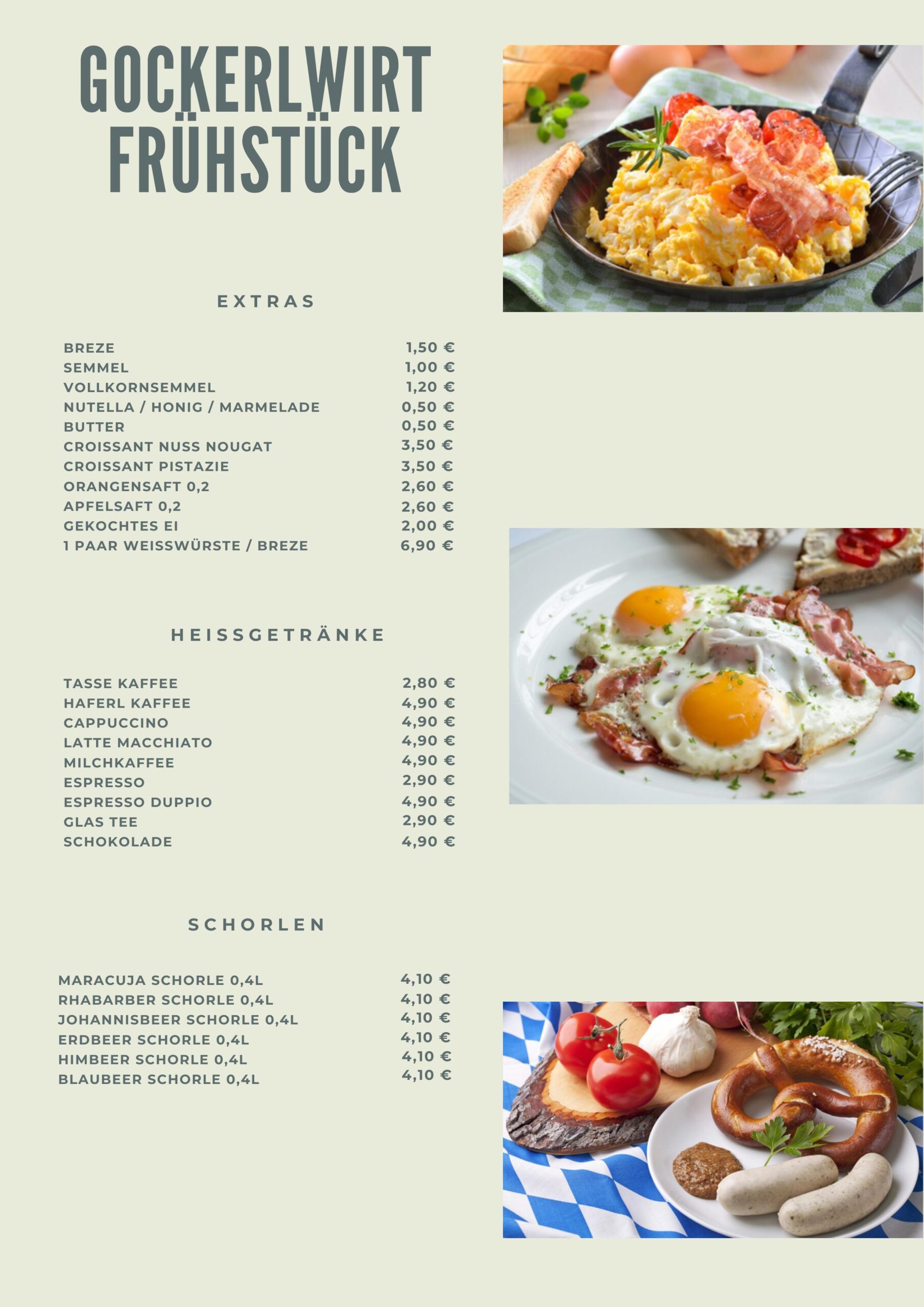 Nach einem guten Frühstück bleibt man gerne noch ein bisschen länger – und genau dafür steht unsere Speisekarte: herzhafte bayerische Klassiker, frische Zutaten und die unverwechselbare Gemütlichkeit des Gockerlwirt mitten in Altötting am Tillyplatz.