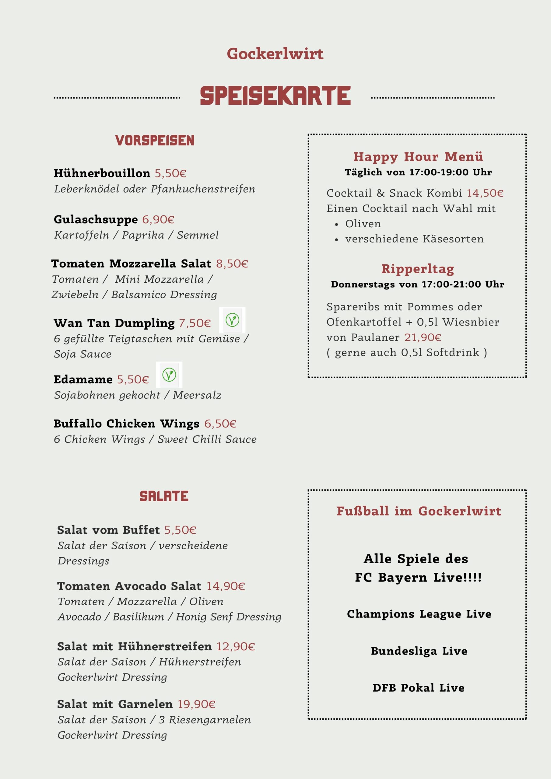 Denn im Gockerlwirt gilt: Essen ist mehr als nur Genuss – es ist ein Stück Geselligkeit, ein Gefühl von Heimat und ein Treffpunkt für alle, die gutes Essen und bayerische Gemütlichkeit schätzen.